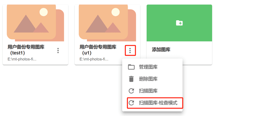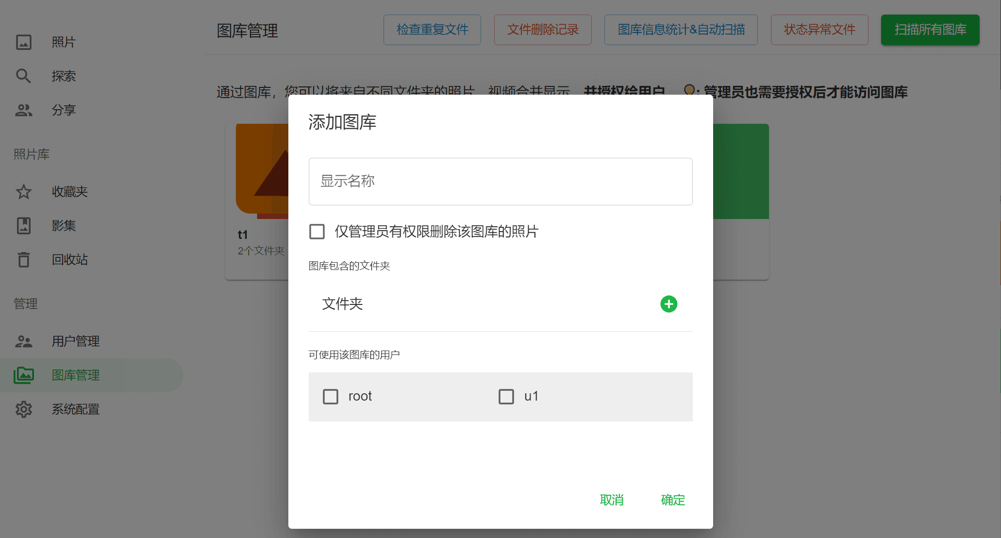 不用担心重复图库会导致重复数据或重复扫描,MT Photos是根据文件夹进行扫描的;图库只是用来将文件夹和用户关联的;